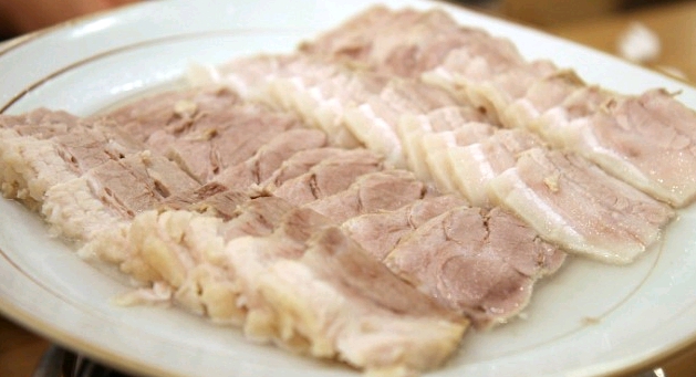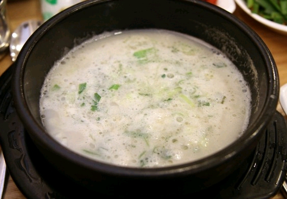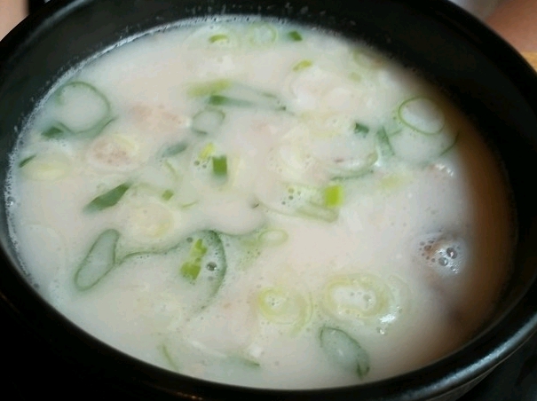뜨끈하고 진한 국물에 돼지고기가 들어있는 돼지국밥과